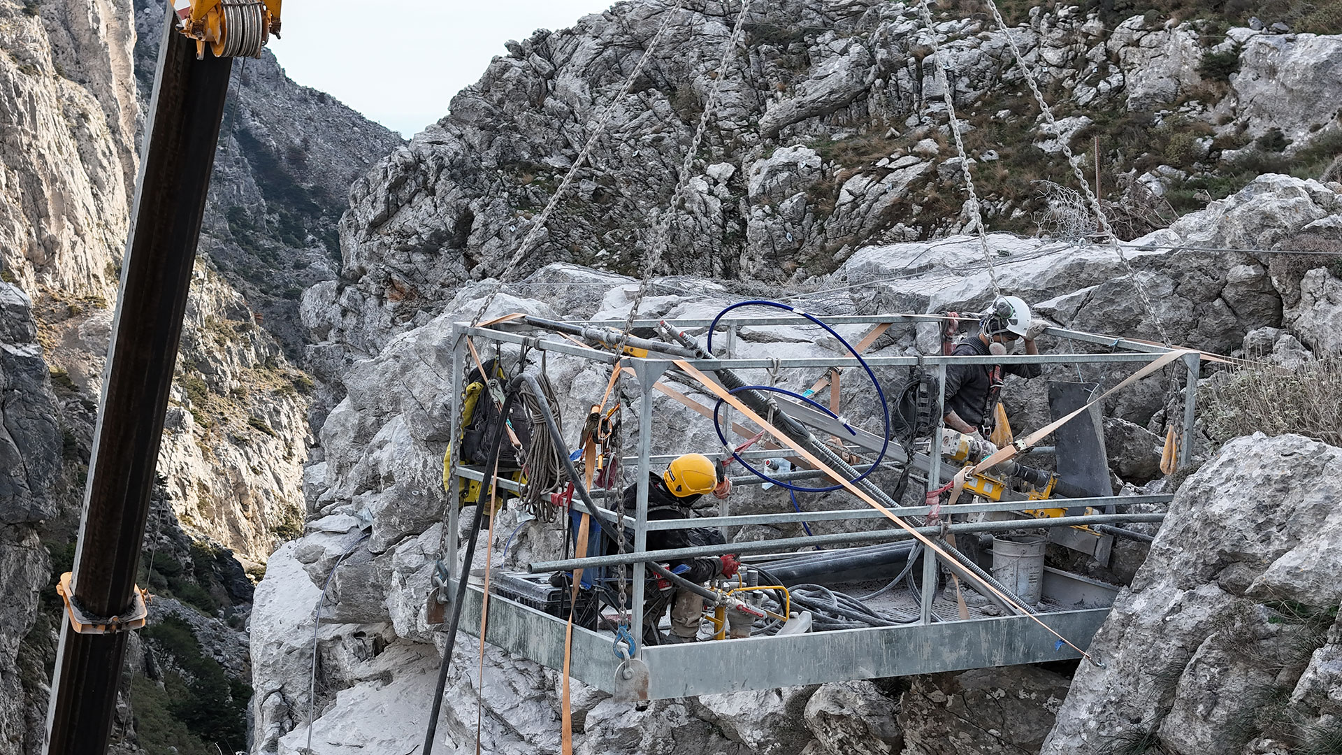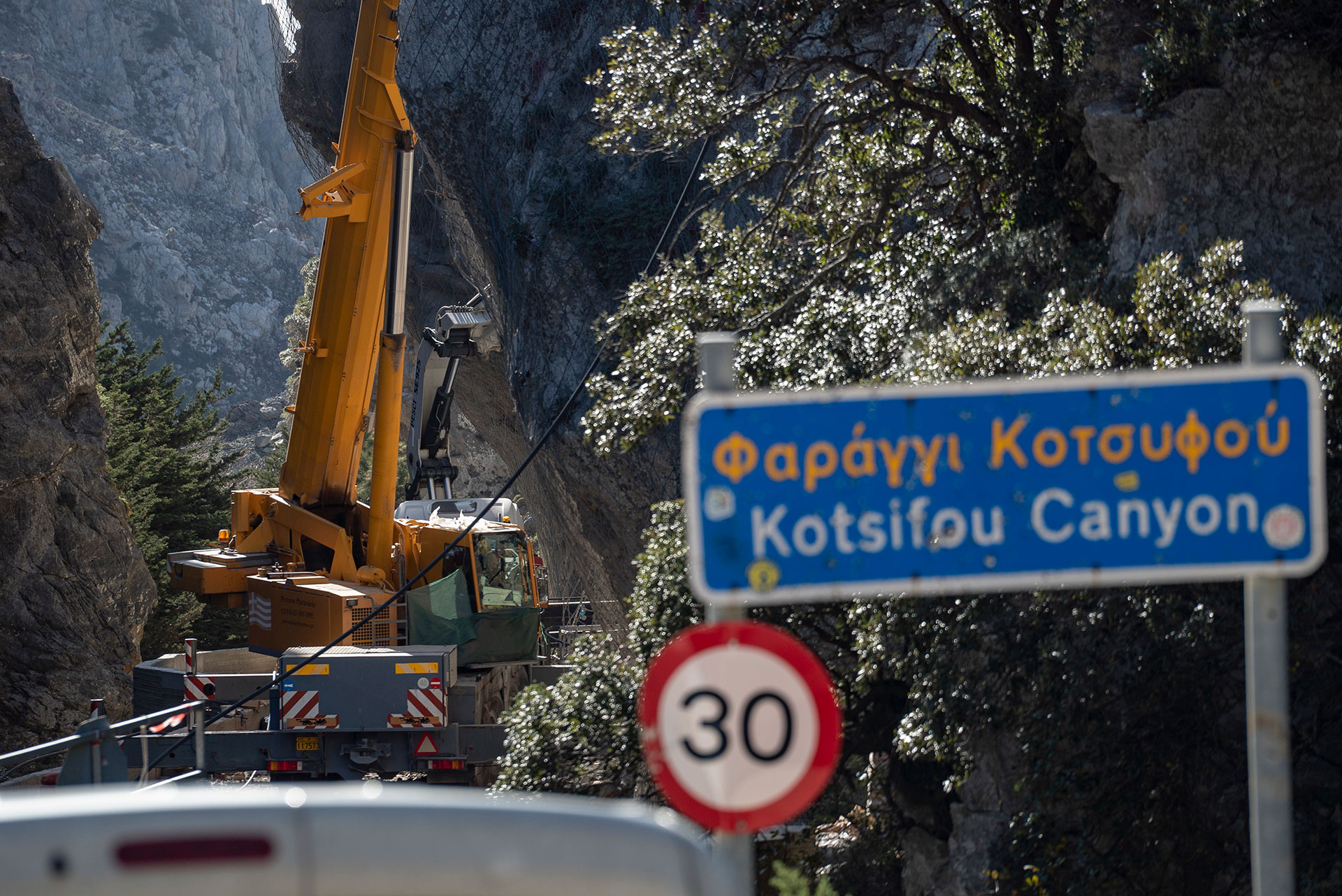 Μετά την κατολίσθηση τμήματος του δυτικού πρανούς στο φαράγγι του Κοτσυφού, Ν. Ρεθύμνου, η εταιρεία μας ως υπεργολάβος ανέλαβε την εκτέλεση έργου βραχοπροστασίας με ανάδοχο την APCON GROUP I.K.E.