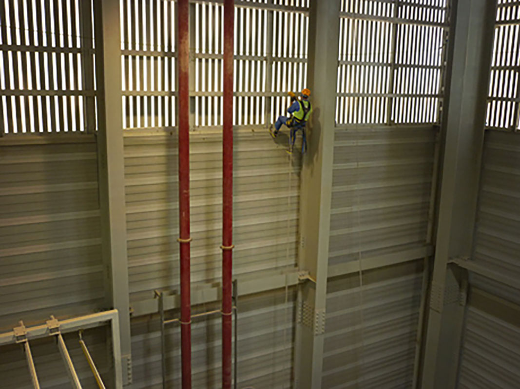 - την απομάκρυνση συσσωρευμένου υλικού από τον φέροντα οργανισμό της μεταλλικής κατασκευής του ρομποτικού κτιρίου αποθήκευσης containers.