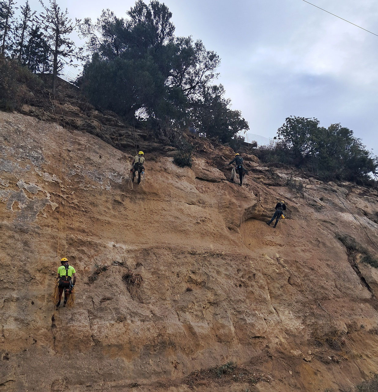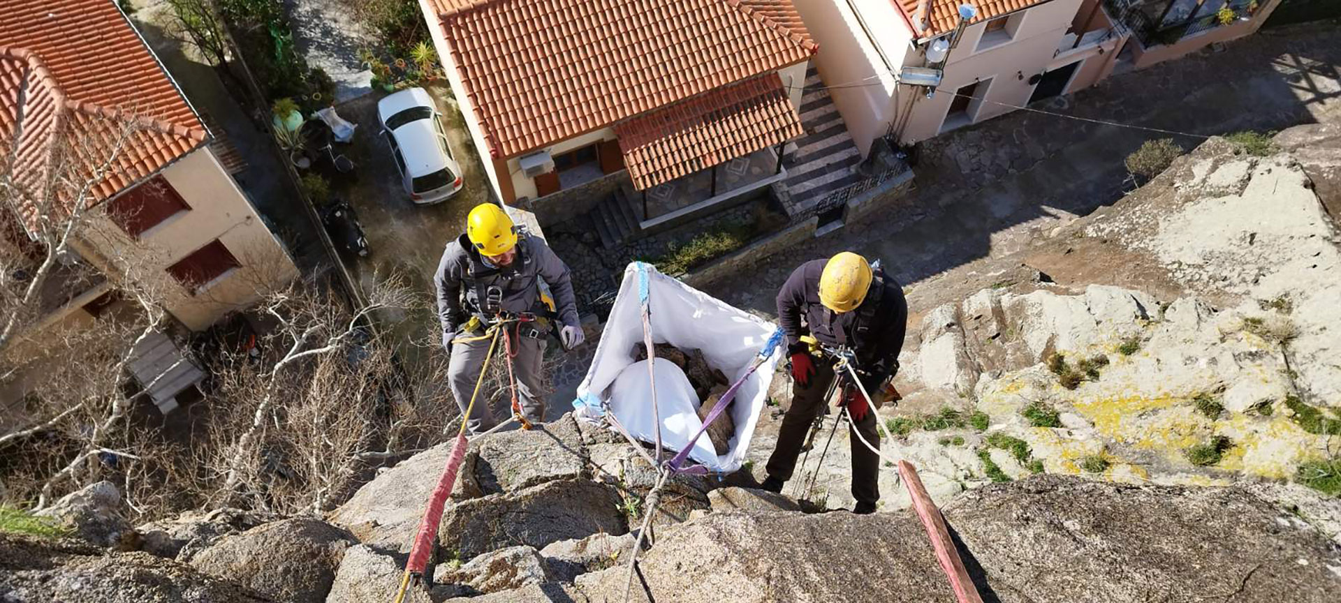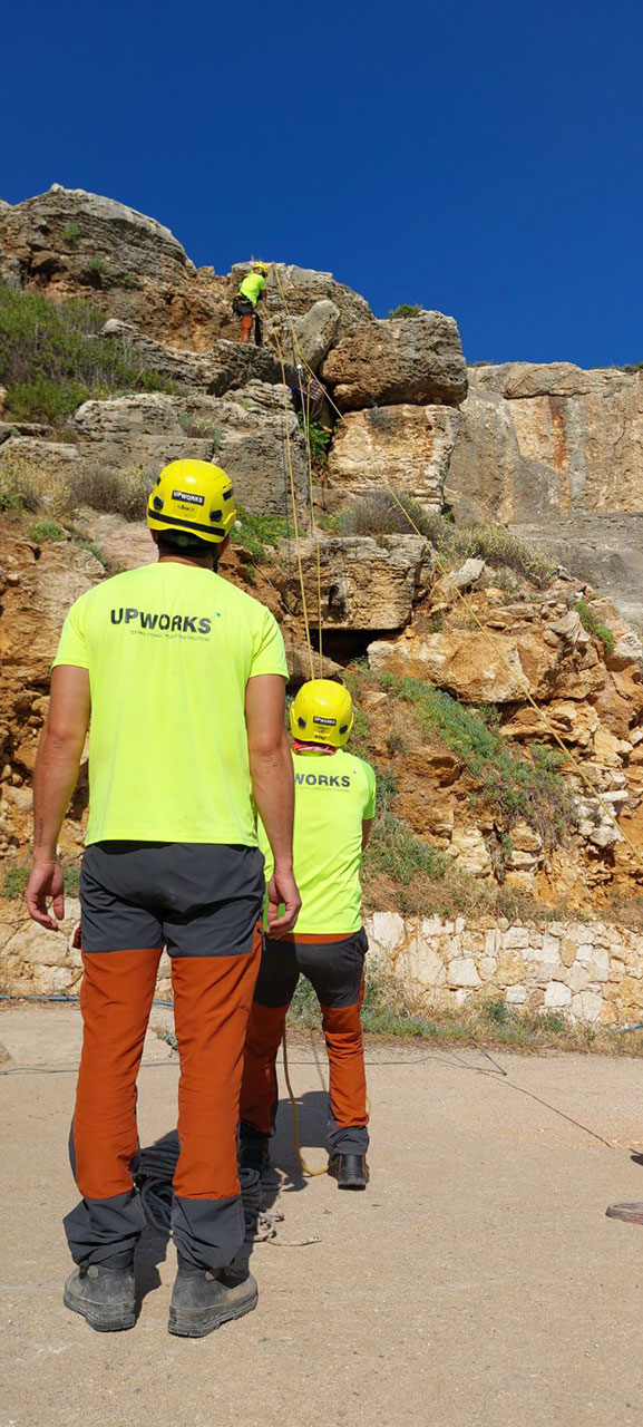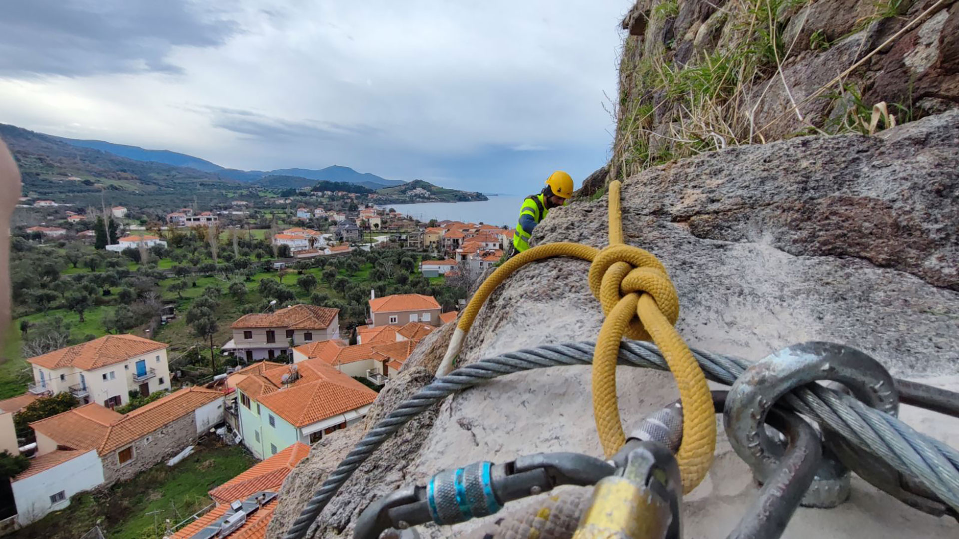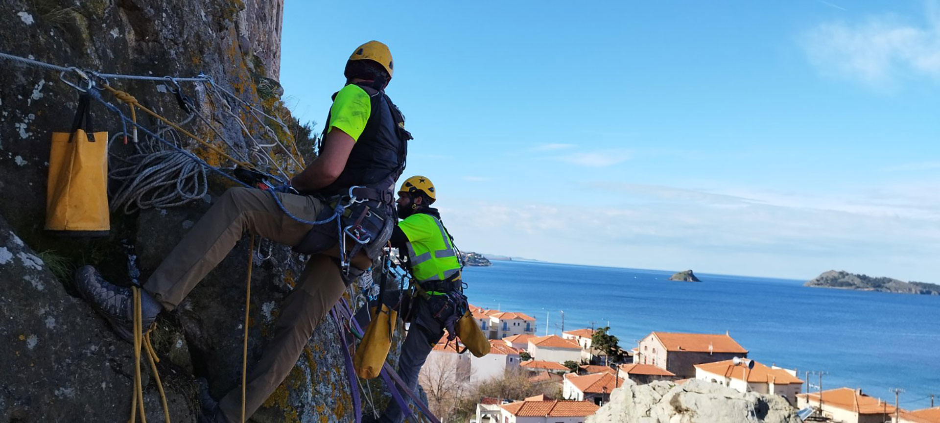 Η δυνατότητα με τη χρήση μεθόδων rope access να προσεγγίζουμε δυσπρόσιτα σημεία καθώς και η πανεπιστημιακή μας ιδιότητα ως γεωτεχνικοί πολιτικοί μηχανικοί μας δίνει το πλεονέκτημα να αφαιρούμε επισφαλείς βράχινους όγκους οπουδήποτε υπάρχει ανάγκη άμεσα και ασφάλεια.