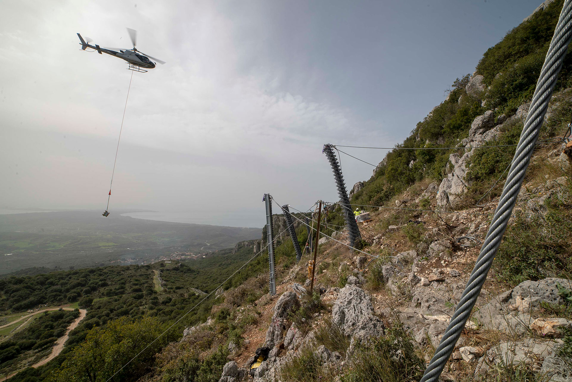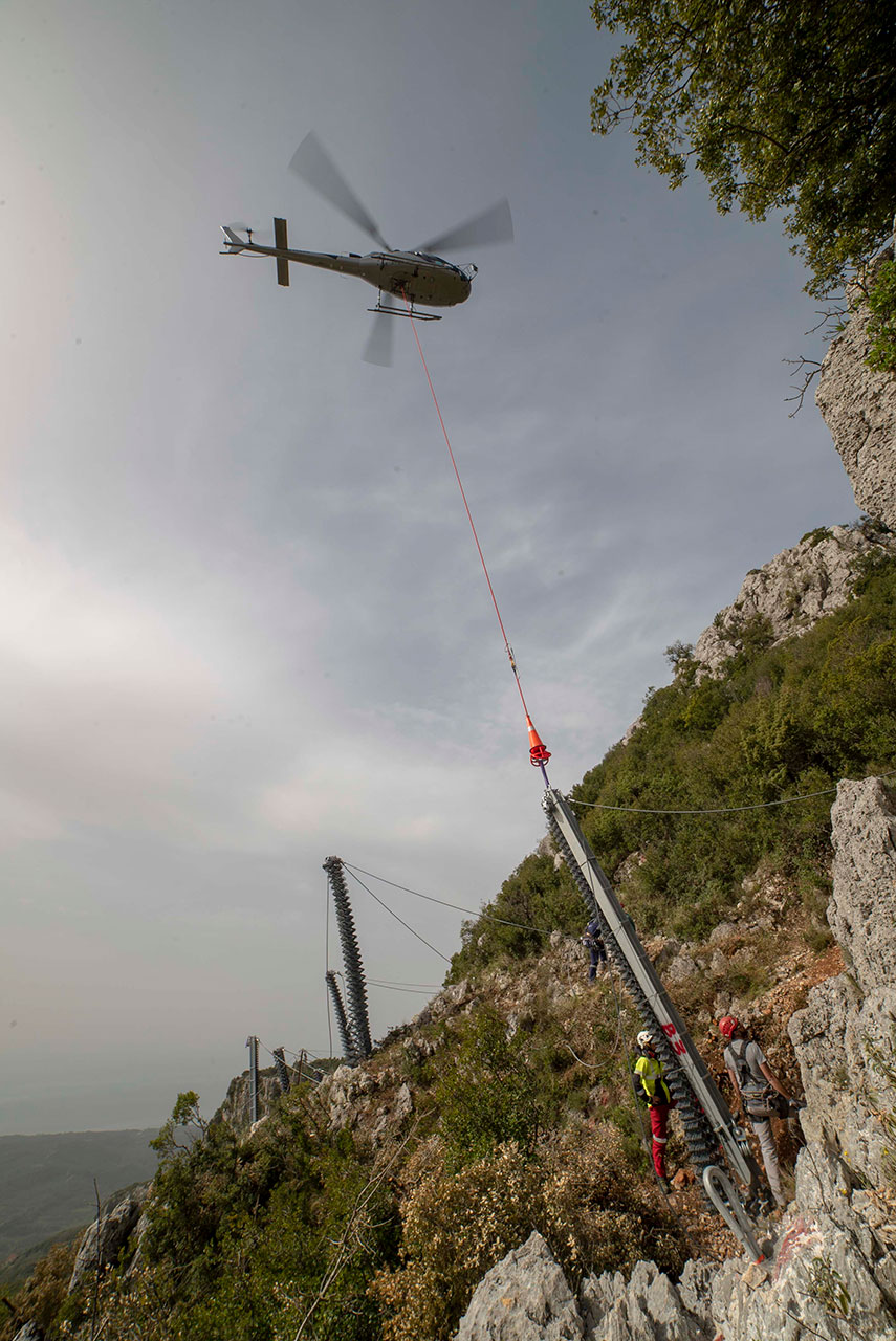 - Εφαρμογή συστήματος βραχοπαγίδων της Geobrugg με μέγιστη ικανότητα ανάσχεσης βραχόμαζας τα 3.000 kJ όπου συνεργαστήκαμε με το ελικόπτερο της Rotors Air Business.