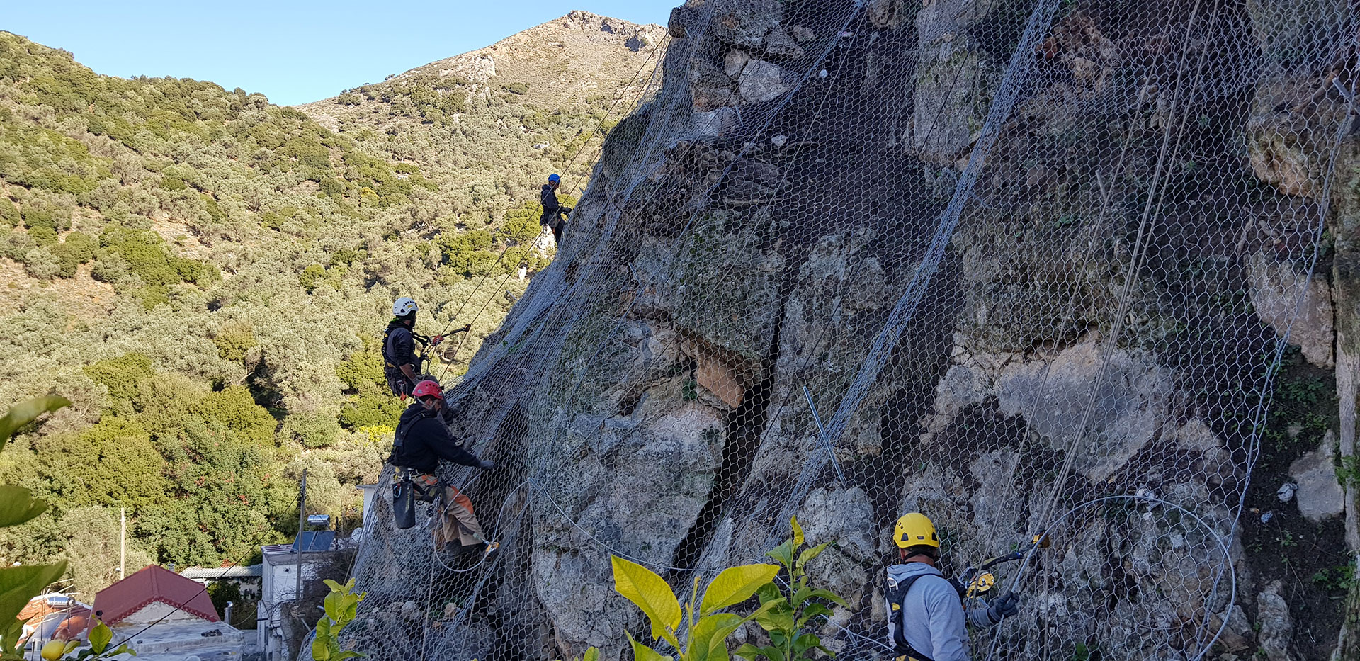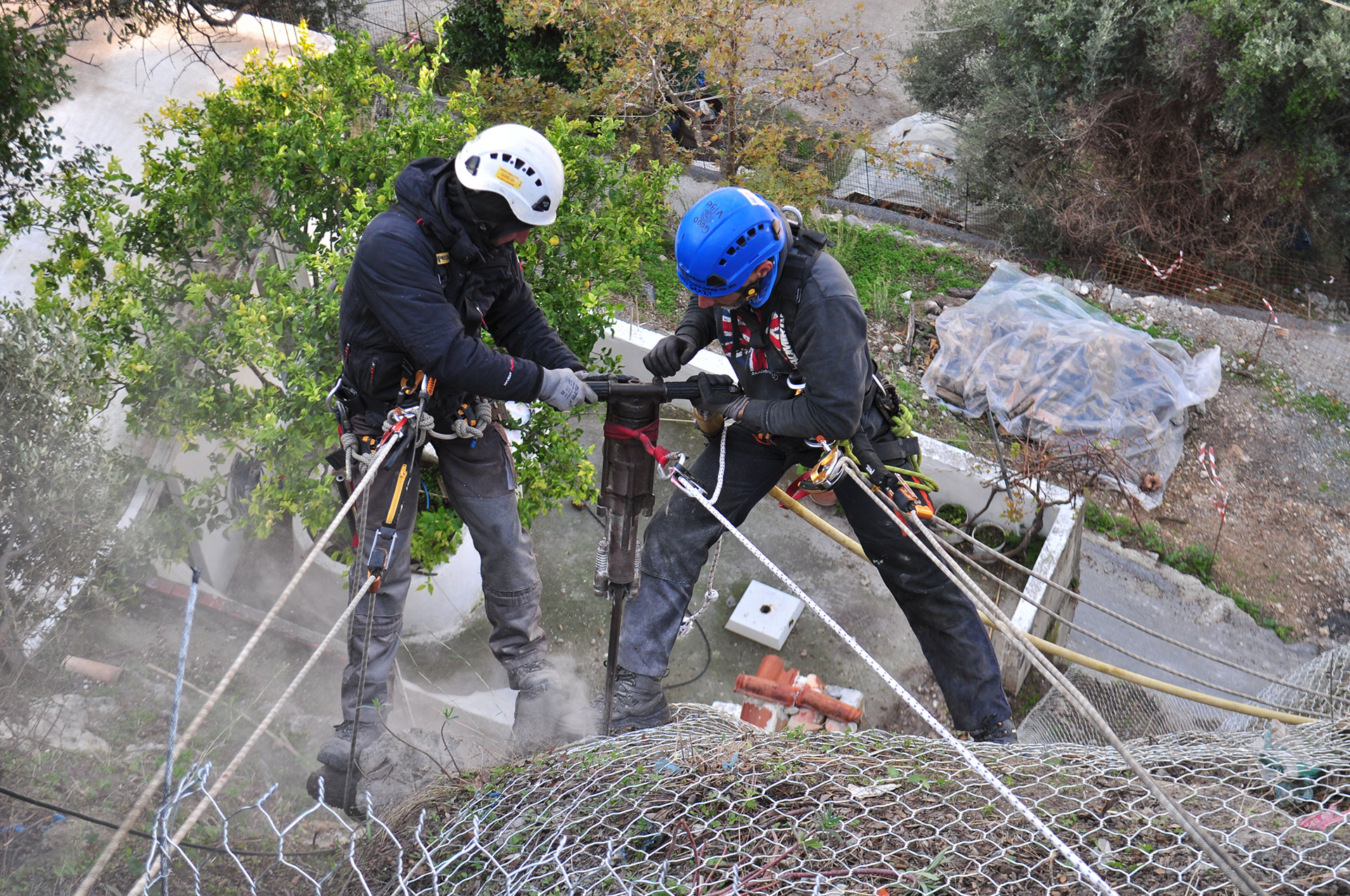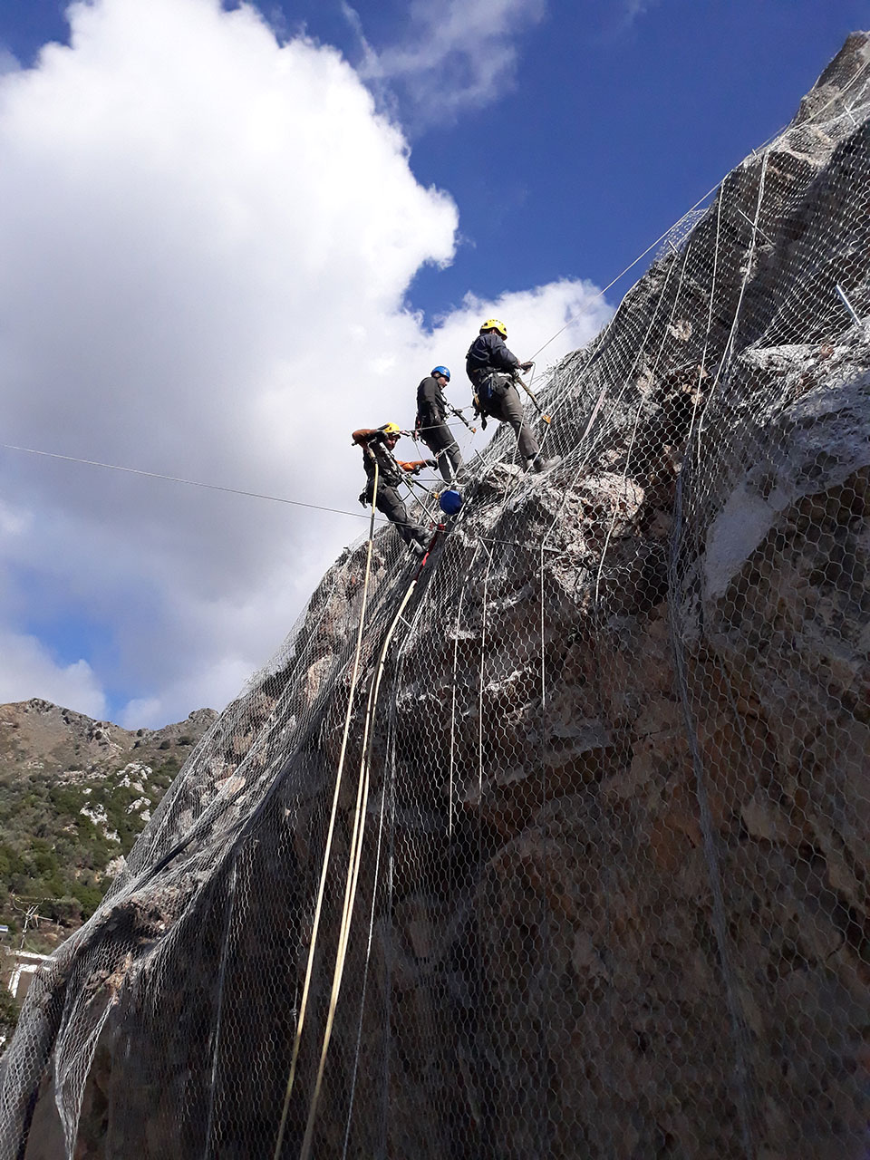 Για τη διεκπεραίωση του έργου, η εταιρεία μας πραγματοποίησε αρχικά καθαρισμό της επιφάνειας των πρανών από τα χαλαρωμένα, αποκολλημένα και ασταθή βραχώδη τεμάχια.