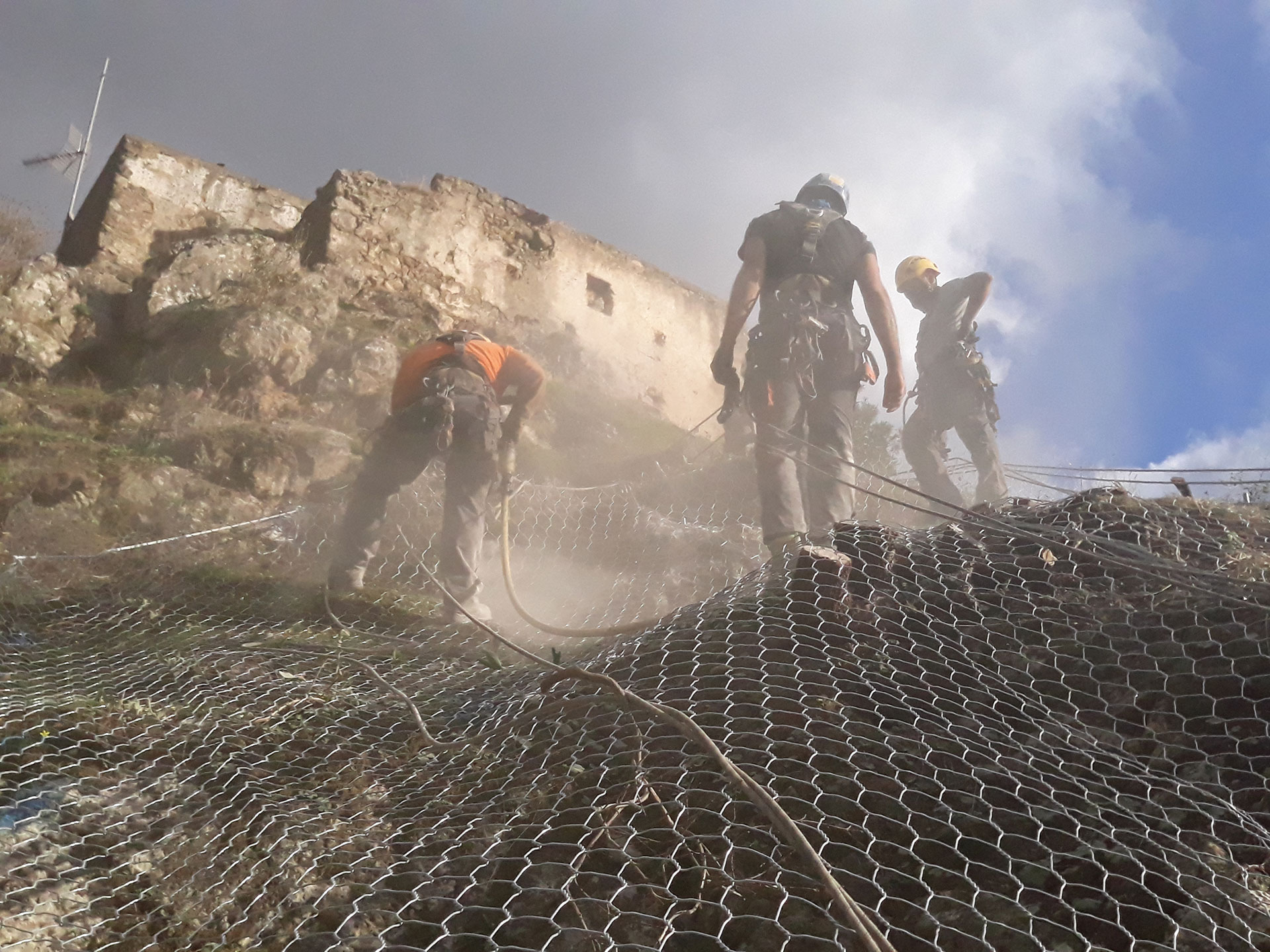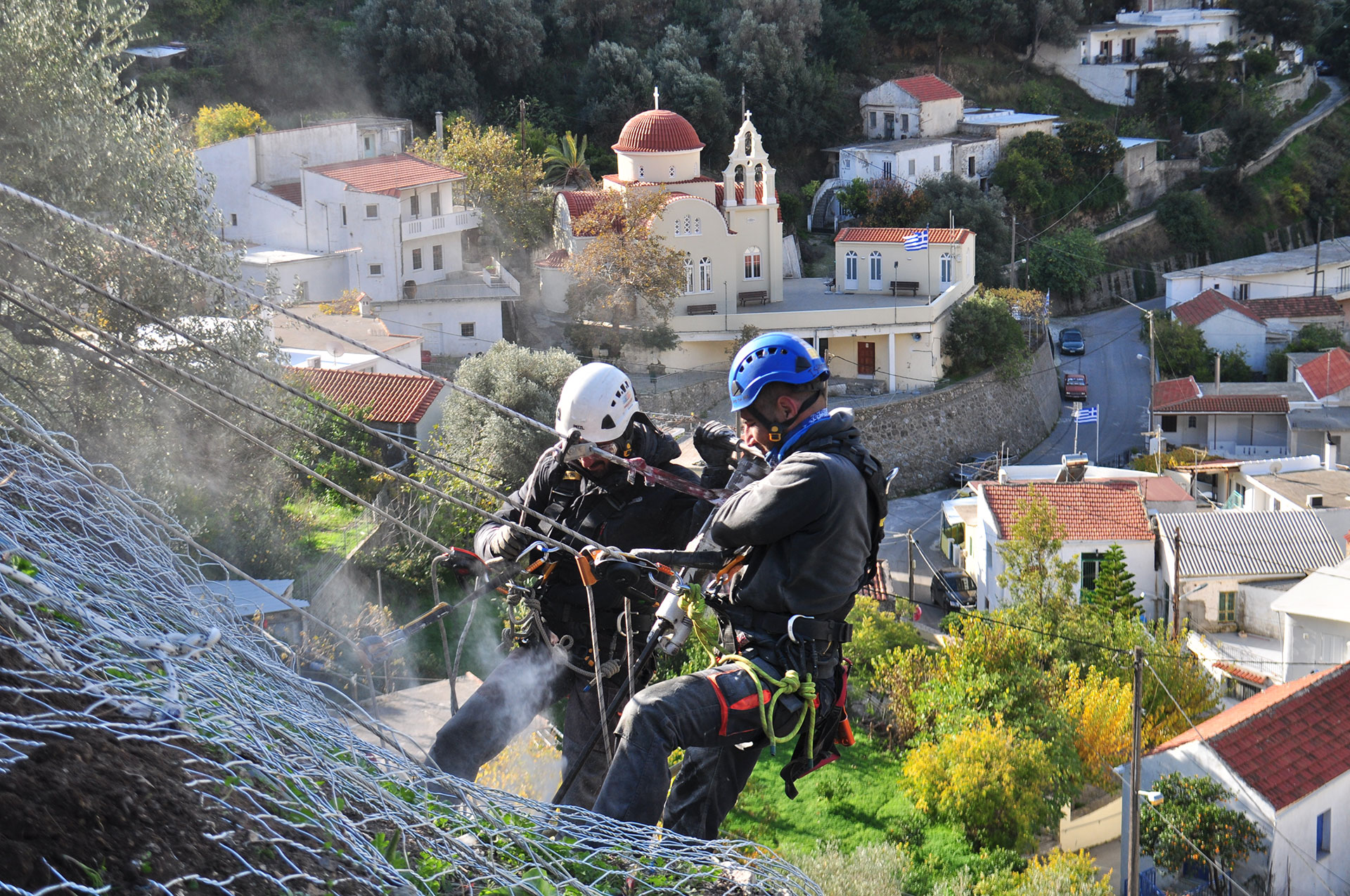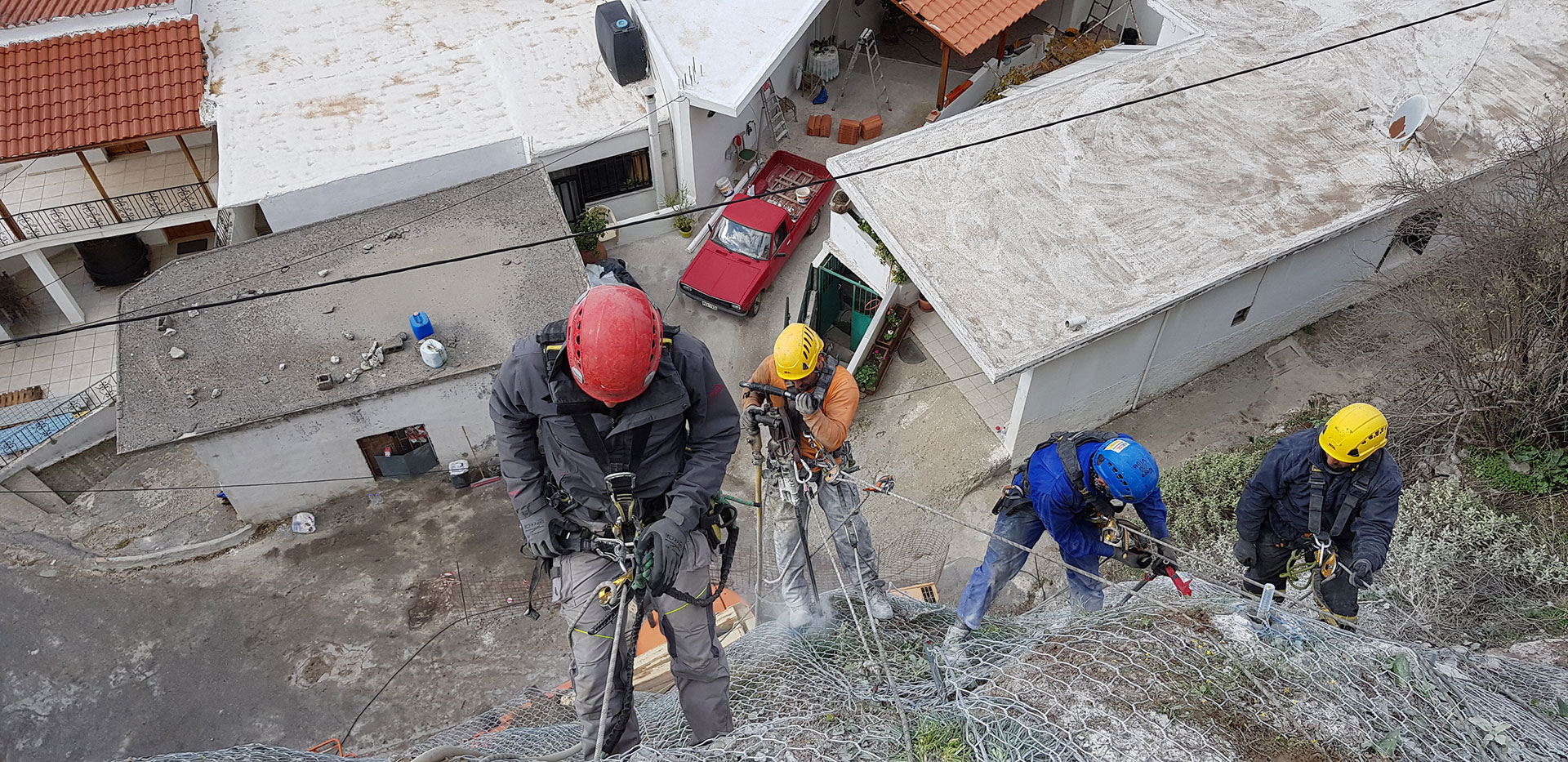 Για τη διεκπεραίωση του έργου, η εταιρεία μας πραγματοποίησε αρχικά καθαρισμό της επιφάνειας των πρανών από τα χαλαρωμένα, αποκολλημένα και ασταθή βραχώδη τεμάχια.