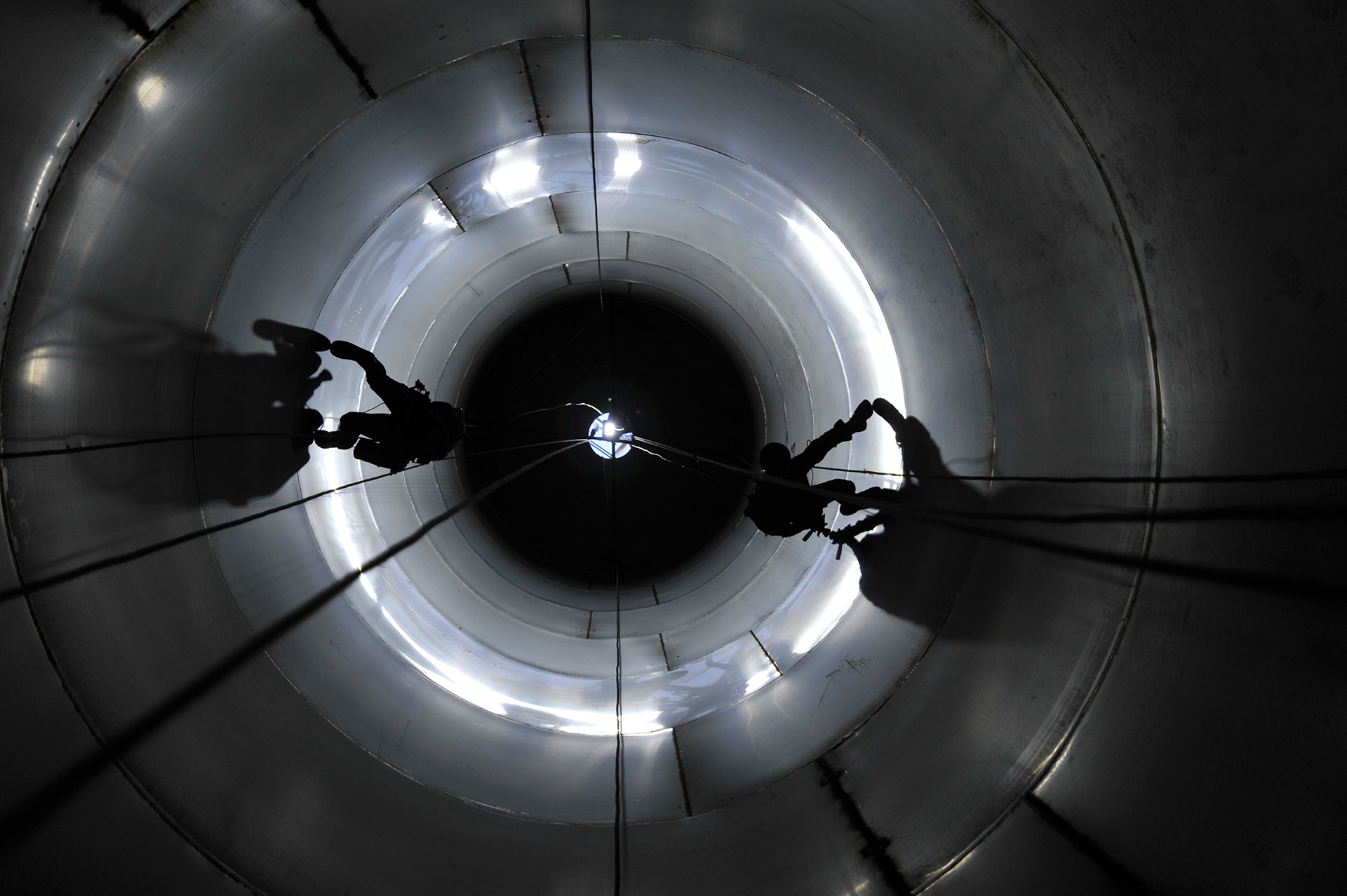 Εφαρμόσαμε τεχνικές πρόσβασης με σχοινιά, καθώς η προσέγγιση σε όλα τα σημεία εσωτερικά των silo ήταν ανέφικτη με άλλο τρόπο.