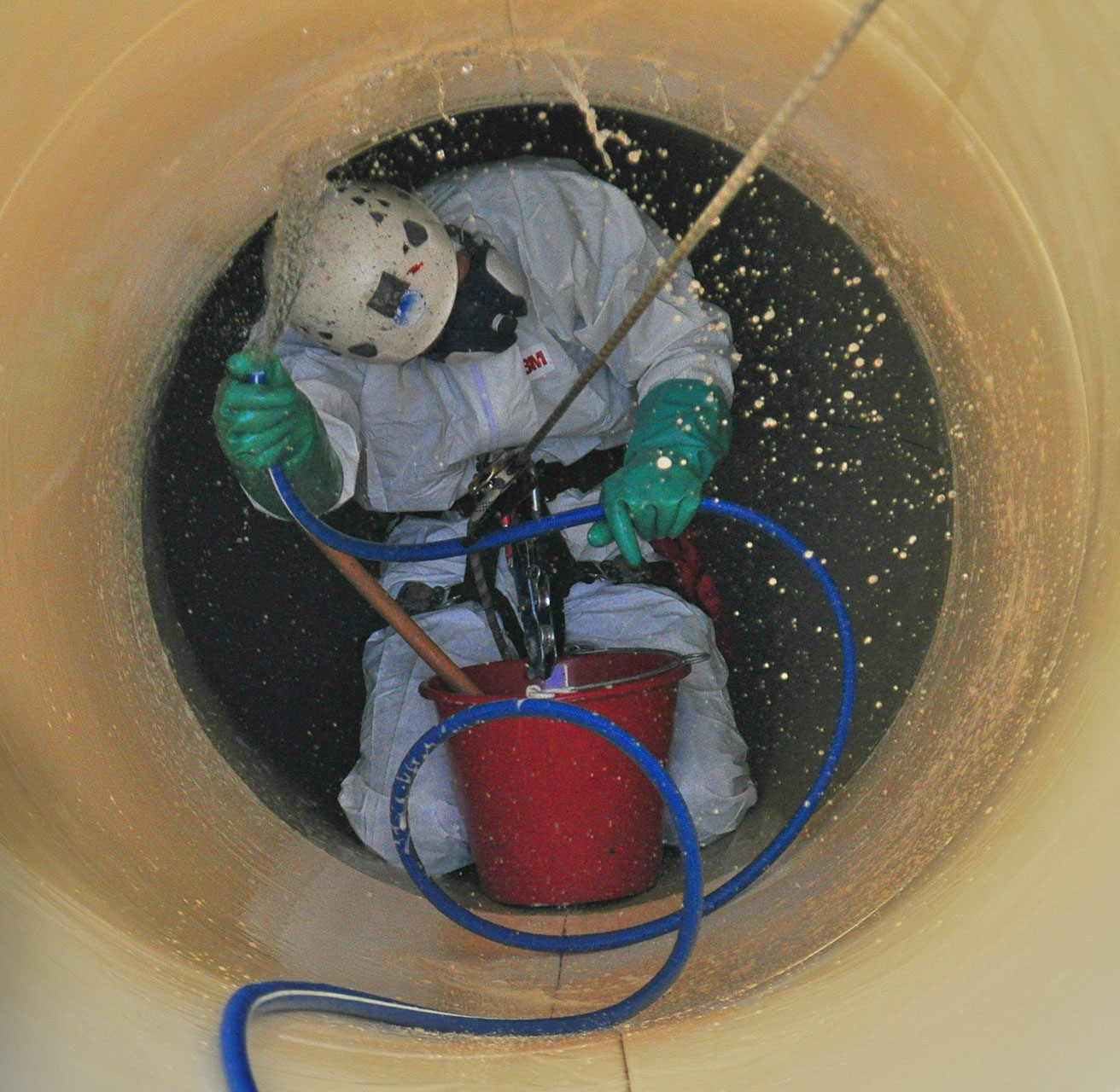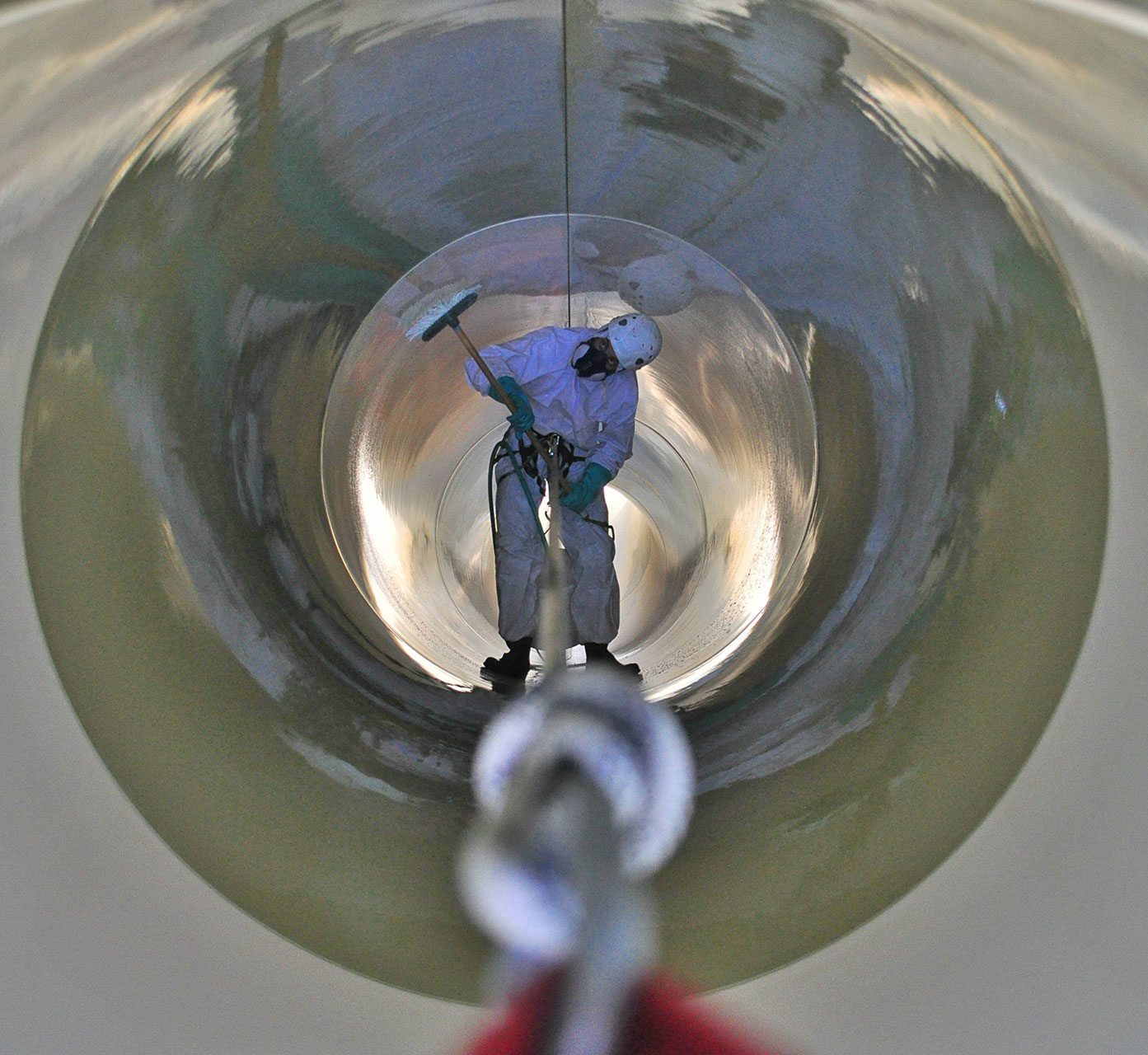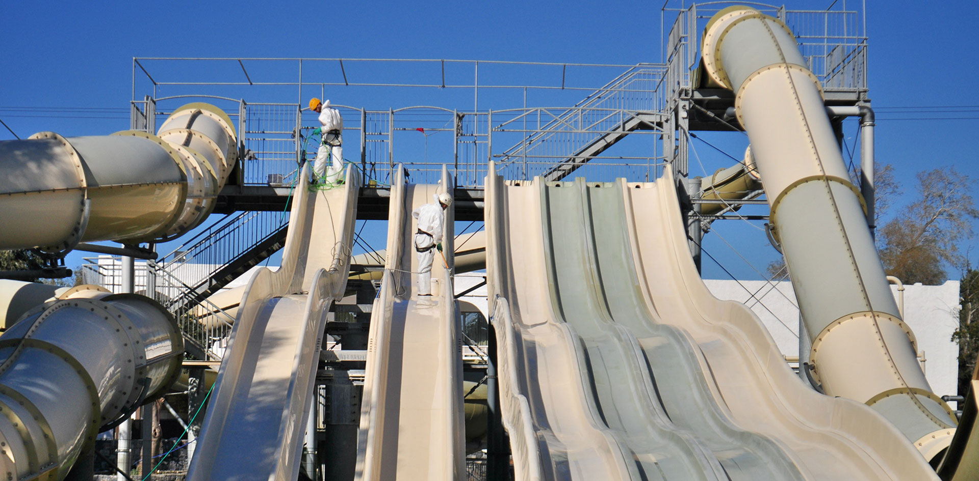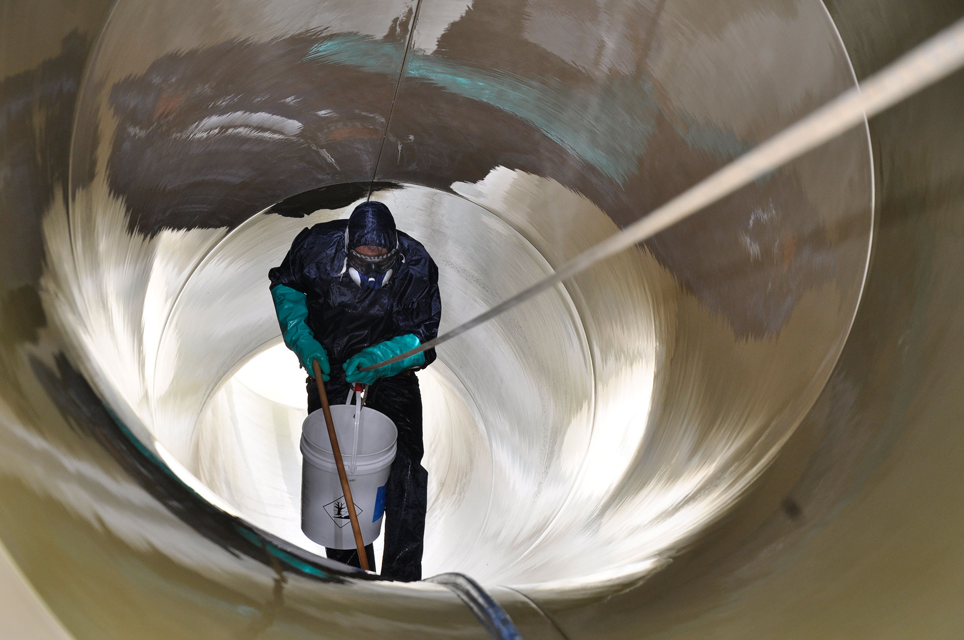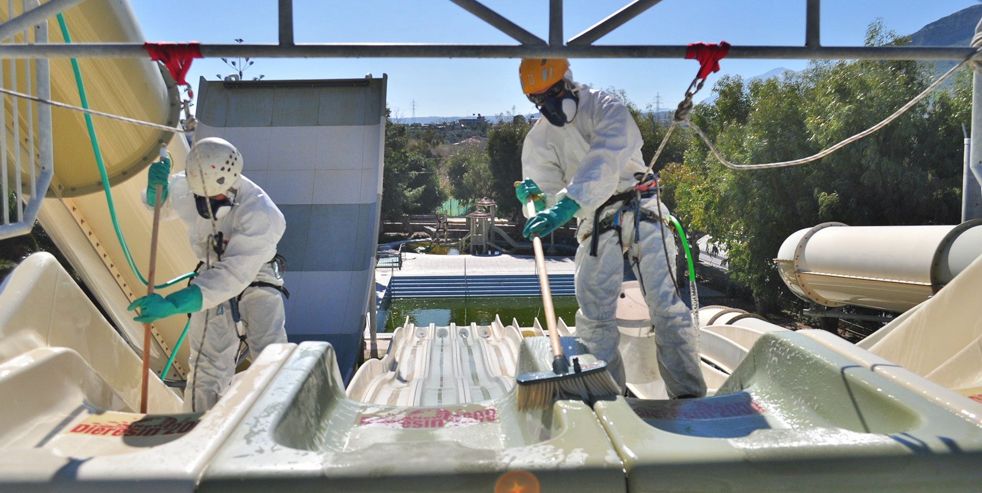 Οι συγκεκριμένες νεροτσουλήθρες είναι κλειστές σωληνωτές και όχι ανοικτού τύπου, οπότε έπρεπε να εφαρμοστούν όλα τα απαραίτητα μέτρα ασφαλείας για εργασίες σε κλειστούς χώρους με αναθυμιάσεις από χημικά υγρά.