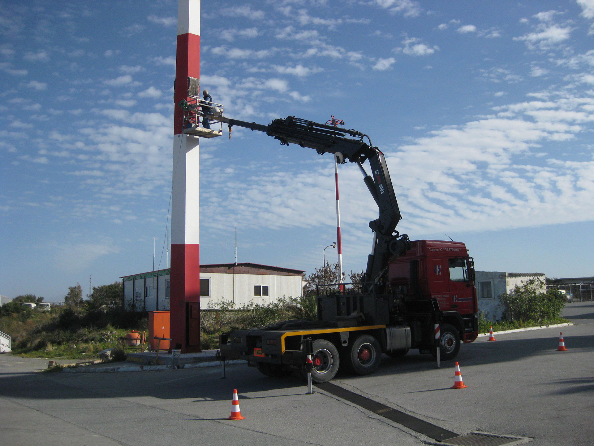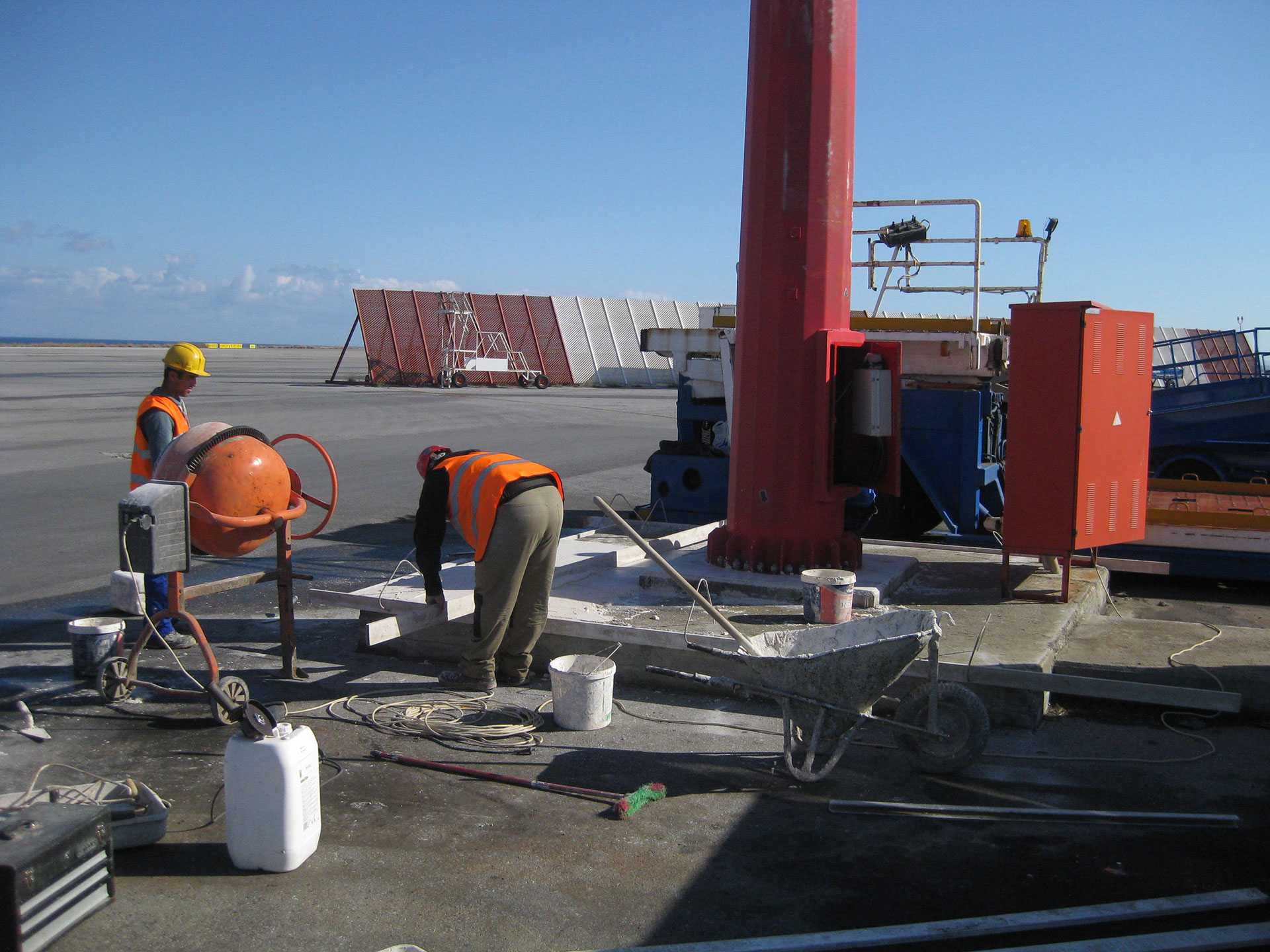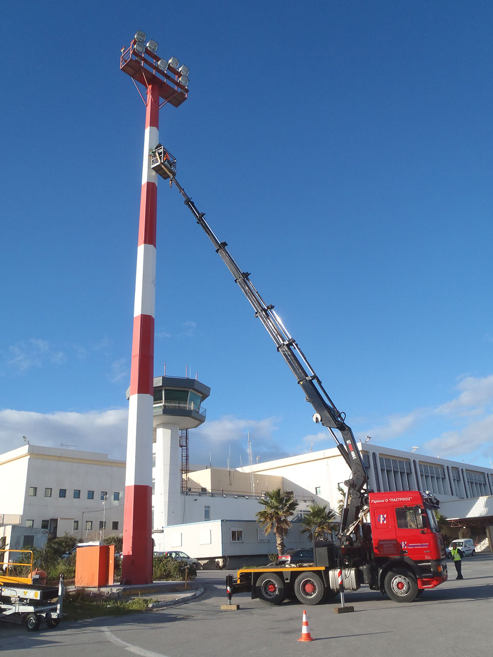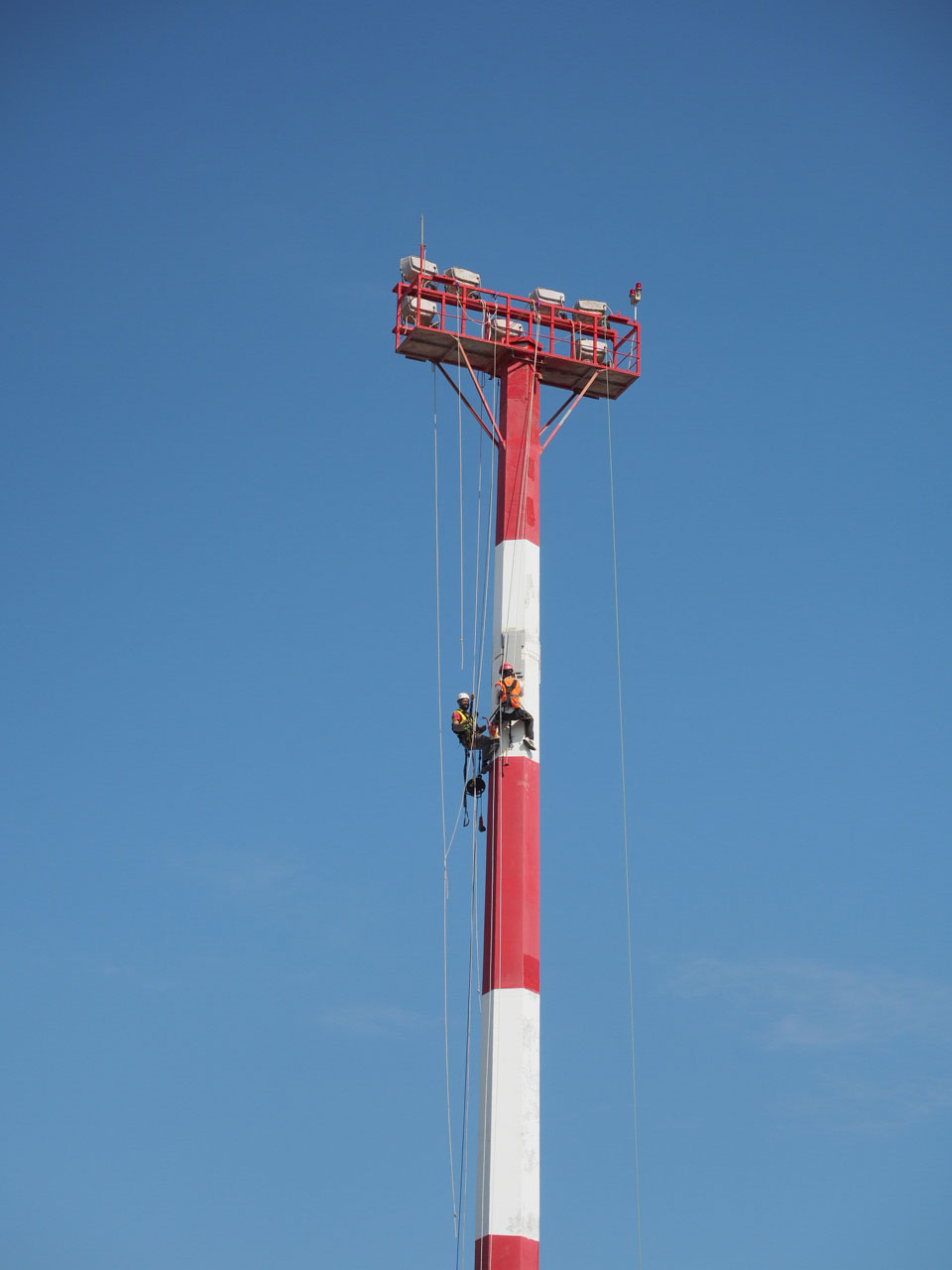 Οι εργασίες πραγματοποιήθηκαν στους οκτώ (8) κεντρικούς μεταλλικούς πυλώνες φωτισμού, καθώς και στους μεταλλικούς ιστούς του αεροδρομίου Ηρακλείου “Νίκος Καζαντζάκης”.