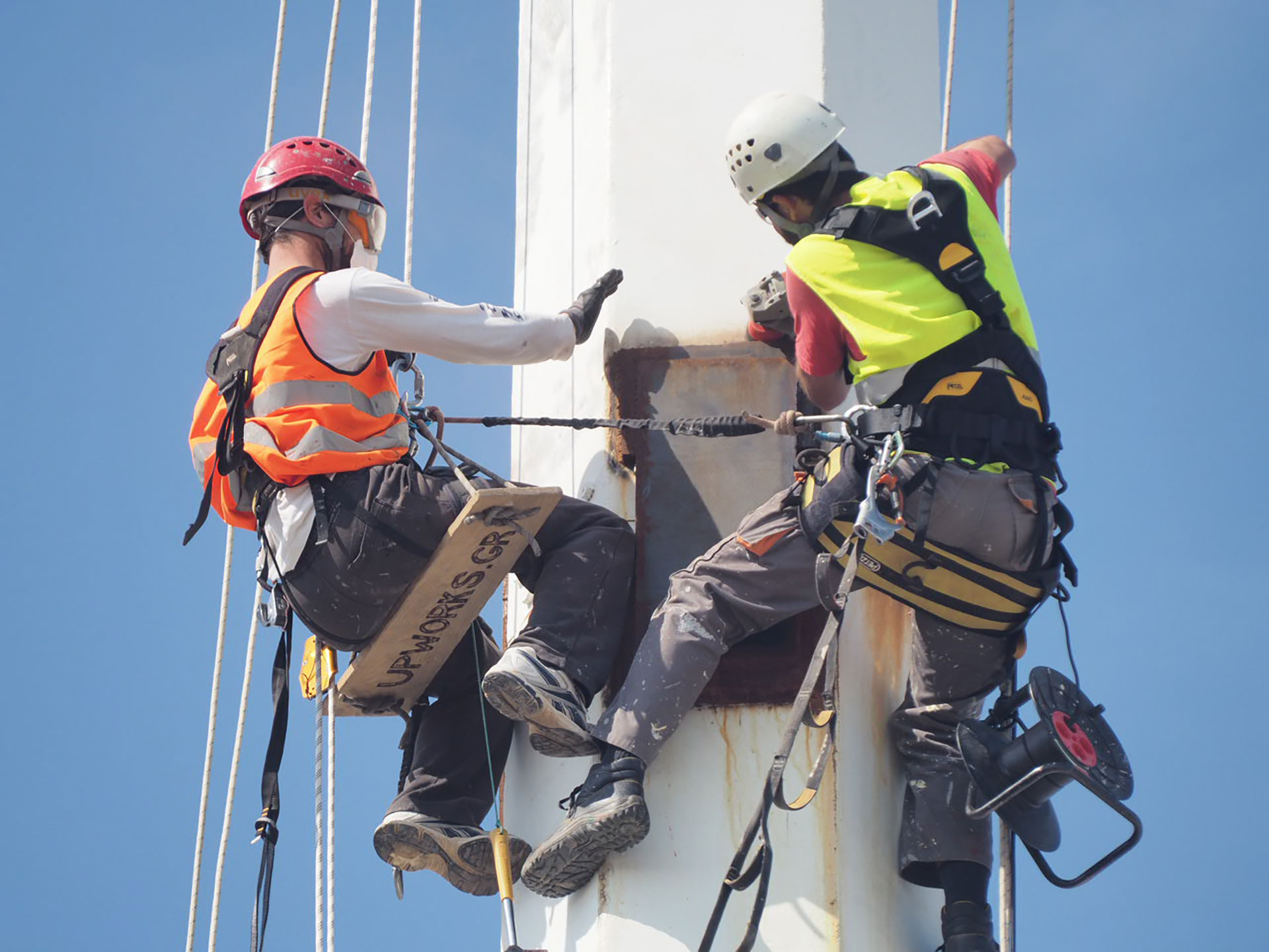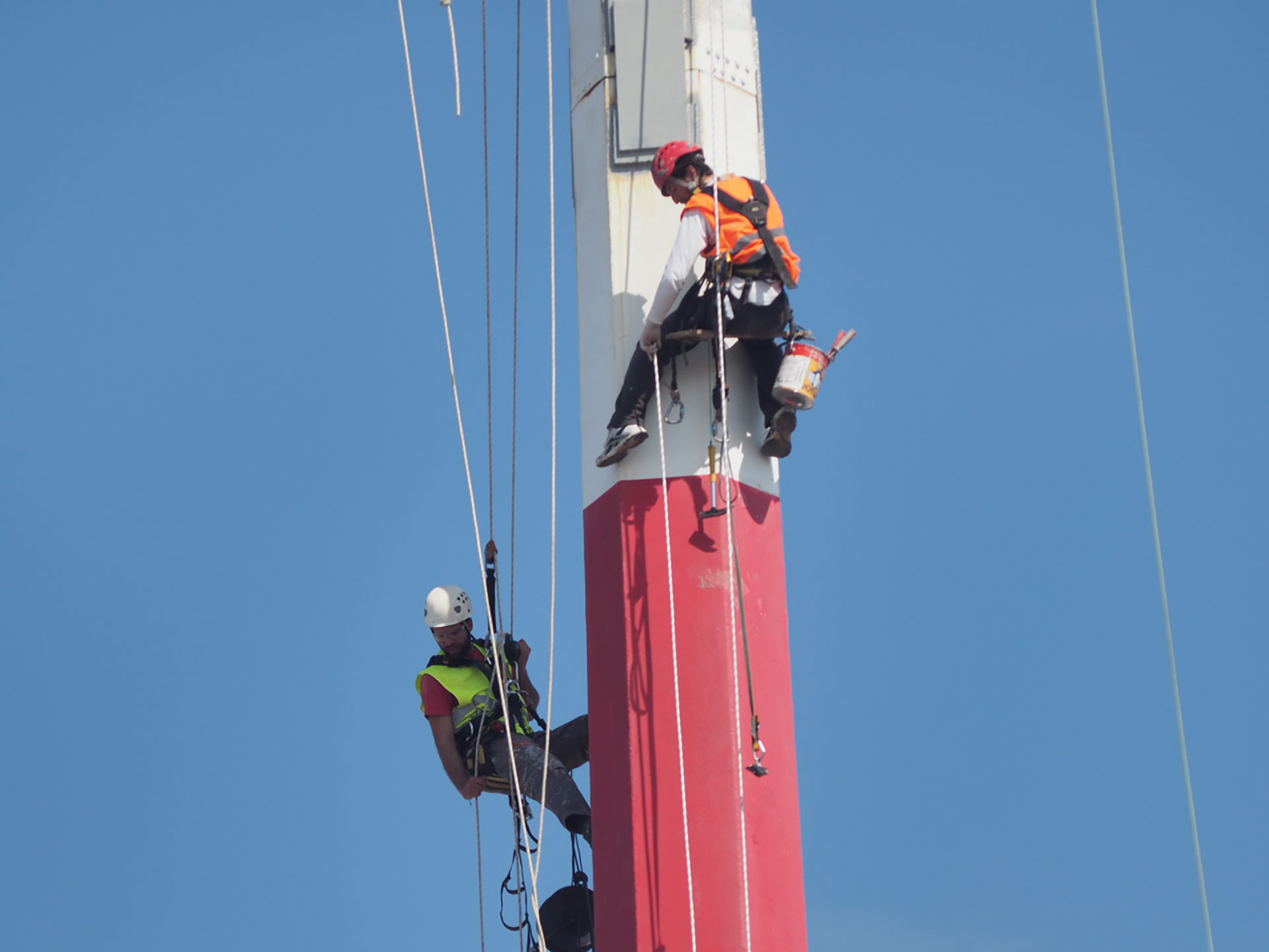 - η συντήρηση με εφαρμογή πολυουρεθανικής βαφής του μεταλλικού φορέα των πυλώνων με μεθόδους rope access.